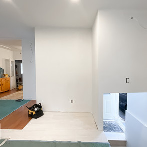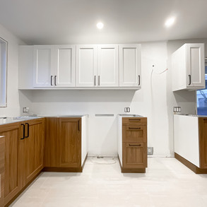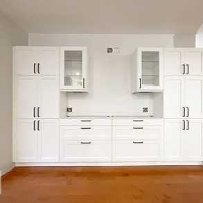 IKEA Kitchen with A Custom Built Section To Cover The Stairs
